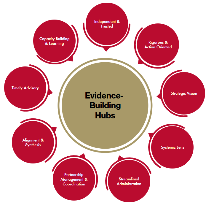 For each Hub, we engage and oversee numerous evaluation teams and provide strategic consultation on priority and emerging needs for Hub sponsors.